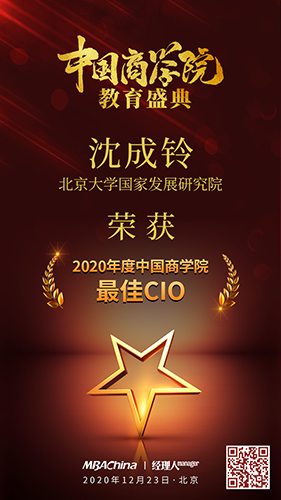 北大国发院院IT部主管、综合行政部副主任沈成铃再度荣获“2020年度中国商学院最佳CIO”奖项。