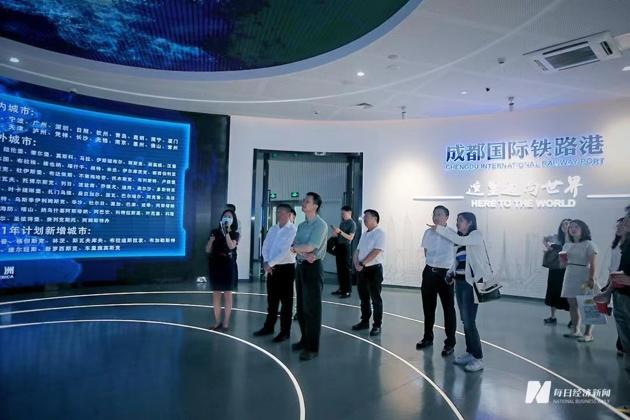 此次调研,姚洋、黄卓一行先后参观了成都国际铁路港展示中心、成都铁路集装箱中心站、成都铁路口岸、亚蓉欧国家(商品)馆等点位,对这条国际贸易陆路大通道有了更直观、全面的了解。