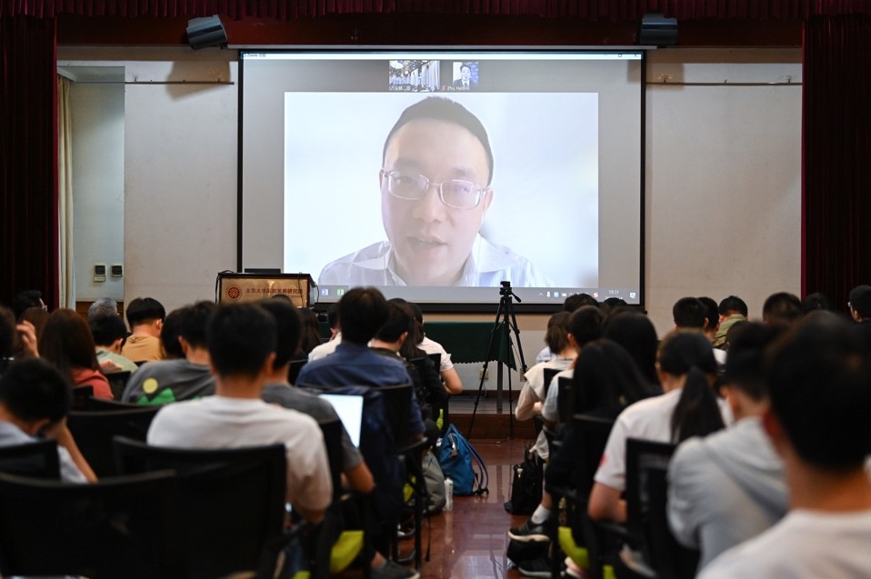分享会上,现任摩根大通董事总经理、中国首席经济学家兼大中华区经济研究主管朱海斌博士从香港连线至会场,首先进行了视屏分享。他首先介绍了在国际清算银行(BIS)工作的十年经历。之后从国际清算银行的特点、历史和架构切入,介绍了BIS作为“央行俱乐部”的定位和角色。同学们通过他的介绍了解到,制定“巴塞尔协议”的巴塞尔银行监管委员会等金融监管协调机构的秘书处设在BIS。BIS比较关注于金融稳定与货币政策的关系,金融危机前,BIS就指出长期低利率可能会带来金融风险。同时,BIS也是宏观审慎概念的首倡者,目前包括中国央行在内的多国央行已将这一理念转为政策实践。