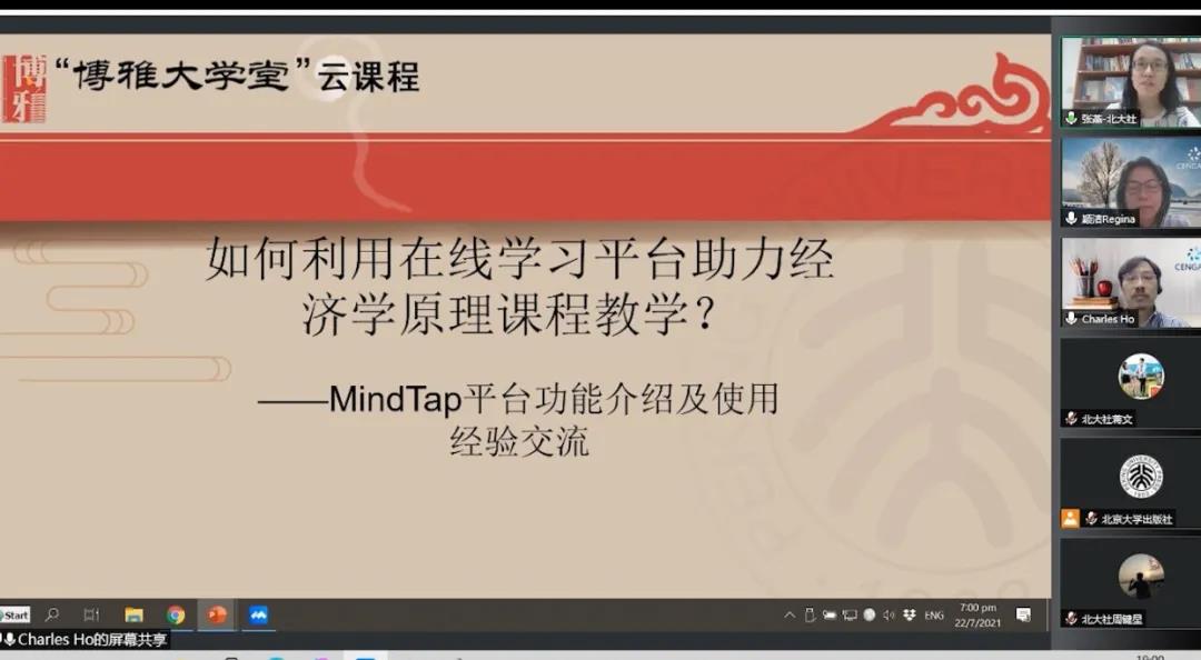 22日晚间,本次研修班还特别设置了线上沙龙的环节,邀请到圣智学习出版集团亚洲区高级营销经理Charles Ho在线分享了“如何利用在线学习平台助力经济学原理课程教学?——MindTap平台功能介绍及使用经验交流”。通过本次直播,Charles向各位观众详细介绍了曼昆《经济学原理(第8版)》所配套的MindTap在线学习平台的资源,也展示了平台所具备的丰富实用的功能,吸引了不少老师来关注和交流。