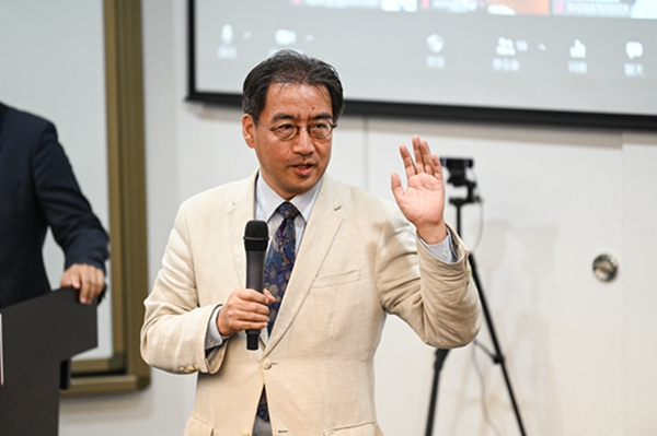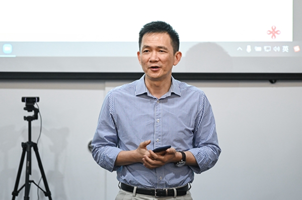 南南学院学术院长傅军教授用英、法、中三国语言向新同学表示了最诚挚的欢迎。他强调,南南学院为使同学们获得最大的收获,在课程设计方面十分严谨用心,因此课业将不会轻松,希望同学们全力以赴,做好充分的准备迎接挑战,战胜挑战。他引用莎士比亚在《哈姆雷特》中的语句:“人类是一件多么了不起的杰作!多么高贵的理性!多么伟大的力量!多么优美的仪表!多么文雅的举动!在行为上多么像一个天使!在智慧上多么像一个天神!”借此他告诉同学们,南南学院将会培养提升大家的脑力智慧和实践智慧,使大家在学成之后能够推动世界向积极的方向改变,这也是领导力的核心所在。