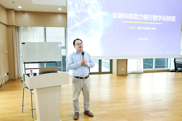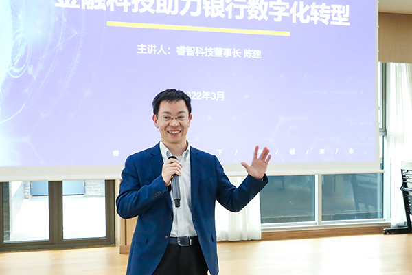 陈建在讲座最后表示,“今天很高兴能在这里与老师和同学们分享睿智科技在银行数字化转型中的案例和体会。银行数字化转型行业是一个朝阳产业,亦是一个巨大的赛道。在这个赛道上,有许多金融科技公司各领风骚。”并以诗句作结,“真是看万山红遍,层林尽染;漫江碧透,百舸争流。睿智科技也是其中行走在前列的船,欢迎老师和同学们来睿智科技参观考察,更欢迎同学们来睿智科技实习、工作。让我们一起到中流击水,浪遏飞舟。”