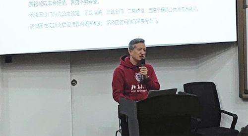 传播中心王贤青主任详细讲解学院新院区承泽园的历史、与北大的渊源。丰富的图文资料,让大家了解到三百年承泽园的变迁和故事。