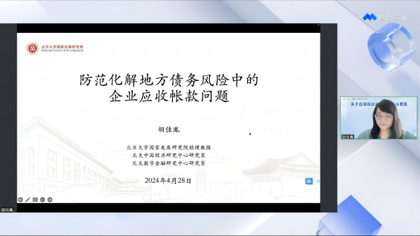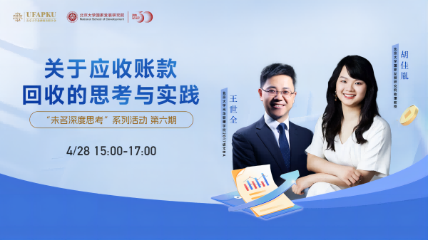 2024年4月28日下午,北大金融“未名深度思考”系列活动第6期“关于应收账款回收的思考与实践”成功举办,光华管理学院MBA校友王世全、国发院助理教授胡佳胤两位嘉宾应邀作主题分享。本次活动由北大金融校友联合会、北大国发院联合举办。活动以在线形式(腾讯会议)举行,在“燕缘财经”视频号、“北大国发院”视频号、抖音号、快手号等平台同步直播。