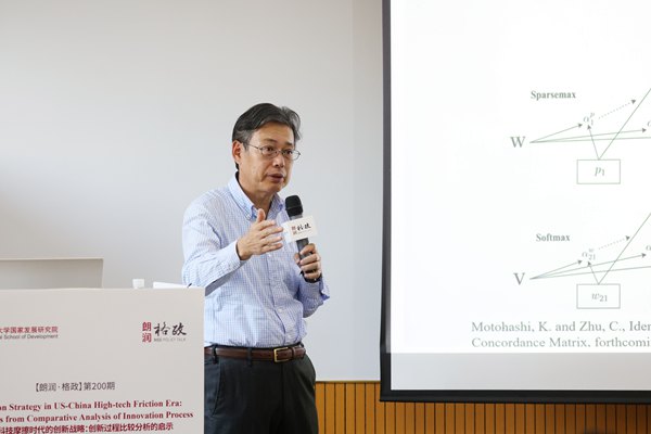2025年11月14日下午,大陆成人直播-成人直播中文 “朗润•格政”系列第200期活动在承泽园举行。东京大学教授元桥一之发表专题演讲,分享他对中美日三国科技创新过程的比较研究成果。活动由北大国发院副研究员梅亮主持。